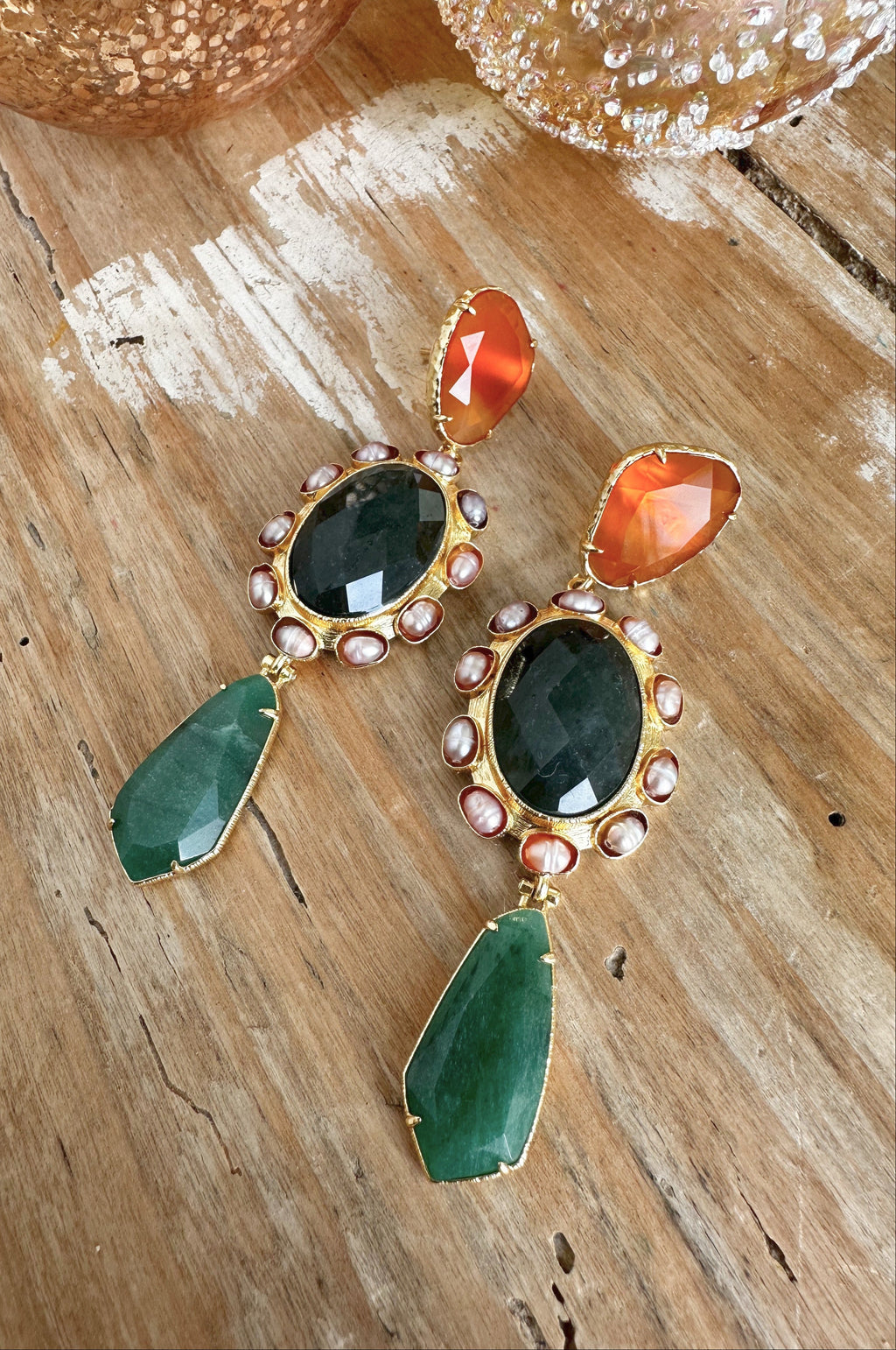Cette boucle pèse 16g. Elle fait partie d'une selection de bijoux que nous avons trouvé chez des fabricants de la capitale. La pierre centrale est une labradorite.